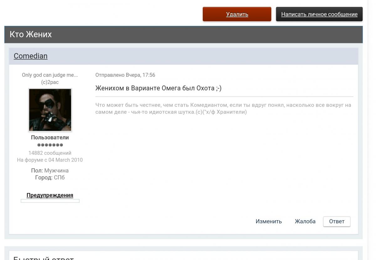 С какой подсказкой? Я спецом тянул с ником чтоб может кто отгадал и ты отгадал.никаких вариков кто именно не было. Тогда с меня бутыль или все же маякни желание по салону.