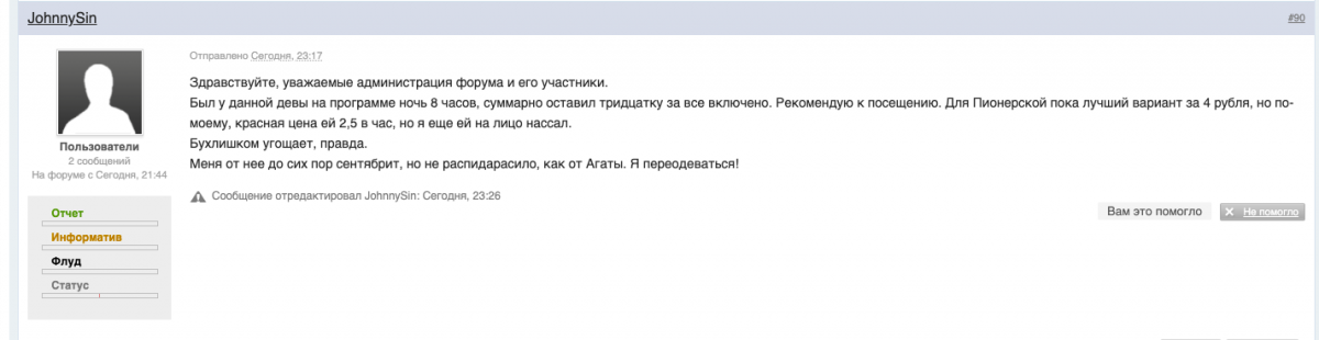 Уважаемый, половина женщин, с низкой социальной ответственностью, предоставленных на этом ресурсе фейки. Я требую выкладывать только проверенную информацию, чтобы граждане РФ пользовались услугами лишь проверенных женщин. Нам не нужны всякие ложные пресевда салоны.