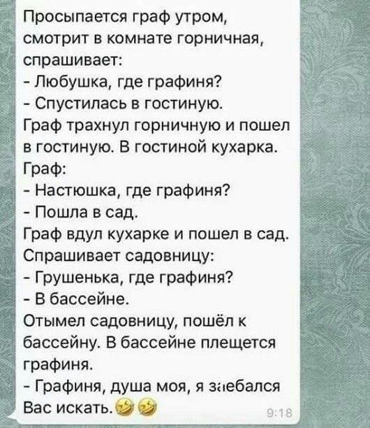 И видит он на пригорке русскую красавицу с длинной косой, которая задрала юбку и, извините, присела опорожниться, повернувшись своей белоснежной попой к французу.