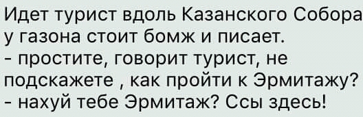 Особа, запинаясь от захлёствующих чувств: - Этот ваш К... Он... Он... Он меня на х#@ послал!!