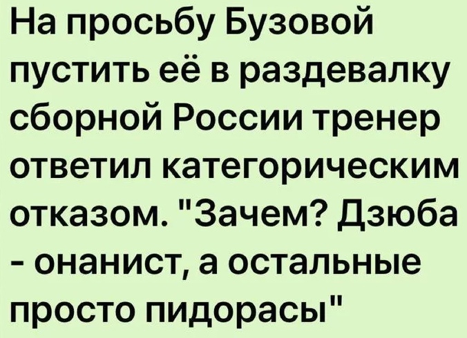 Наши чемпионат Европы проиграли, вернулись домой... Жена просит Дзюбу в магазин сходить. Артём ей: "Да не пойду я! Меня сейчас болельщики увидят, в лицо плевать будут! Побьют ещё!" Жена: "Надень моё платье, парик, накрасься, никто тебя не узнает"... Оделся, накрасился пошел. В очереди в магазине стоит, бабка подходит: "Привет, Дзюба!" Артём в недоумении: "Бабка, но как?! Как ты меня узнала? Я накрашенный, в платье, парике, лабутенах"... Бабка: "Не узнаёшь что ли? Это же я, Черчесов"...