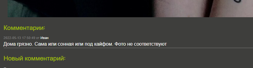 К слову, фотки её, но им лет по 20. Ей около 50. Перегар унюхал. В кв ремонт нормальный, ванная норм, гели в наличии(ещё бы, ведь смыть это масло(оно подсолнечное что ли