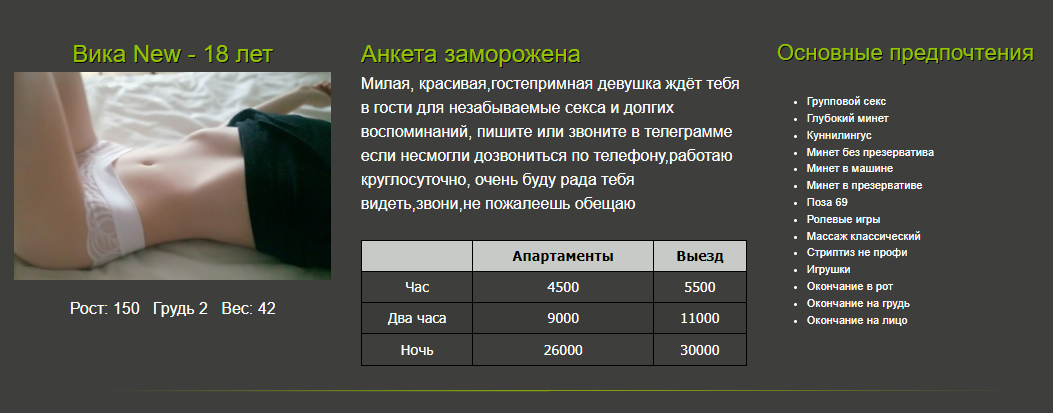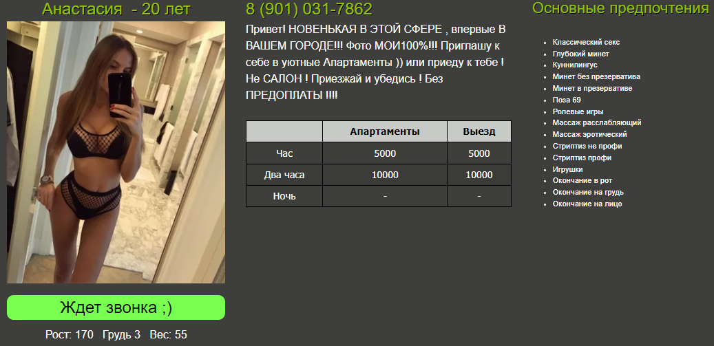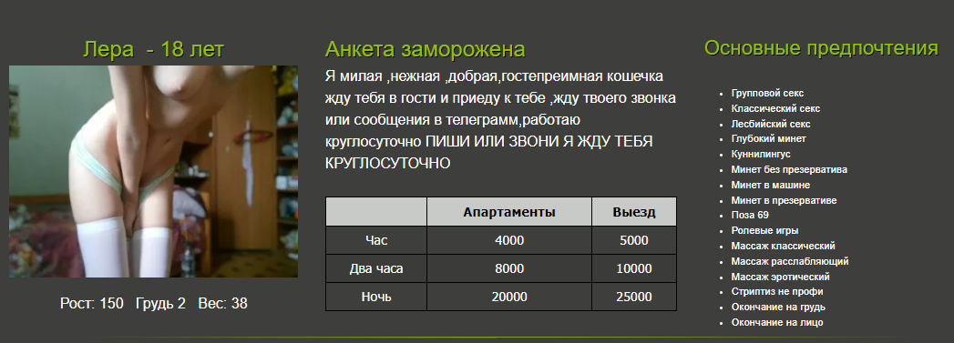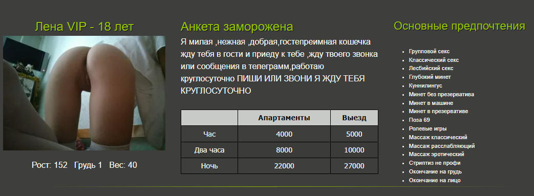 Добрый день, уважаемые Доны! Читаю форум ярика уже несколько лет, но зарегался только что т. к. хочу поделиться опытом, излить душу, или как тут часто пишут - накипело) Да, ценники необоснованно завысели, приезжают непонятные "модели" со столицы, нормальных актрис по пальцам перечесть(и данная особа не из их числа).