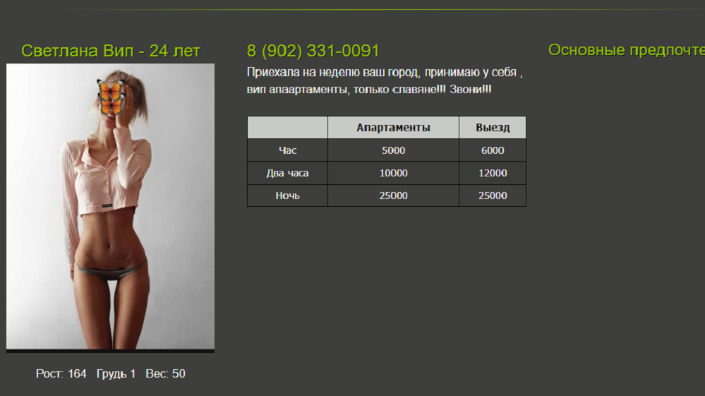 Пожалуйста. Да, есть такое. Ладно хоть девушка не сильно дорого обошлась) Худая и груди считайте, что не было. Но ввиду ее молодости и симпатичности встречей в целом остался доволен. Она как бы не работает, если что. Попала в сферу после накрытия вэбкама и насколько я понял, отработала недолго. То ли стала встречаться с кем успела, то ли ещё хрен знает. А, прикол. Я ей тогда отдал 3,5-4 к. что ли. Через месяц-два звоню, говорит да, вот встречаюсь с теми у кого мой номер есть (у меня, к слову, ее номер появился случайно, потому что в конце попросила ещё 500 руб. перевести, ей так диспетчер сказал), так вот, я говорю сколько денег-то хочешь. Она такая семь. Я чуть дар речи не потерял