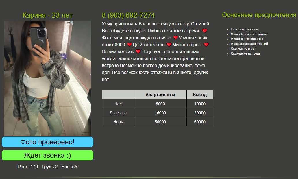 На целый месяц прямиком из Тайланда приехала к нам Карина 8-903-692‑72‑74,