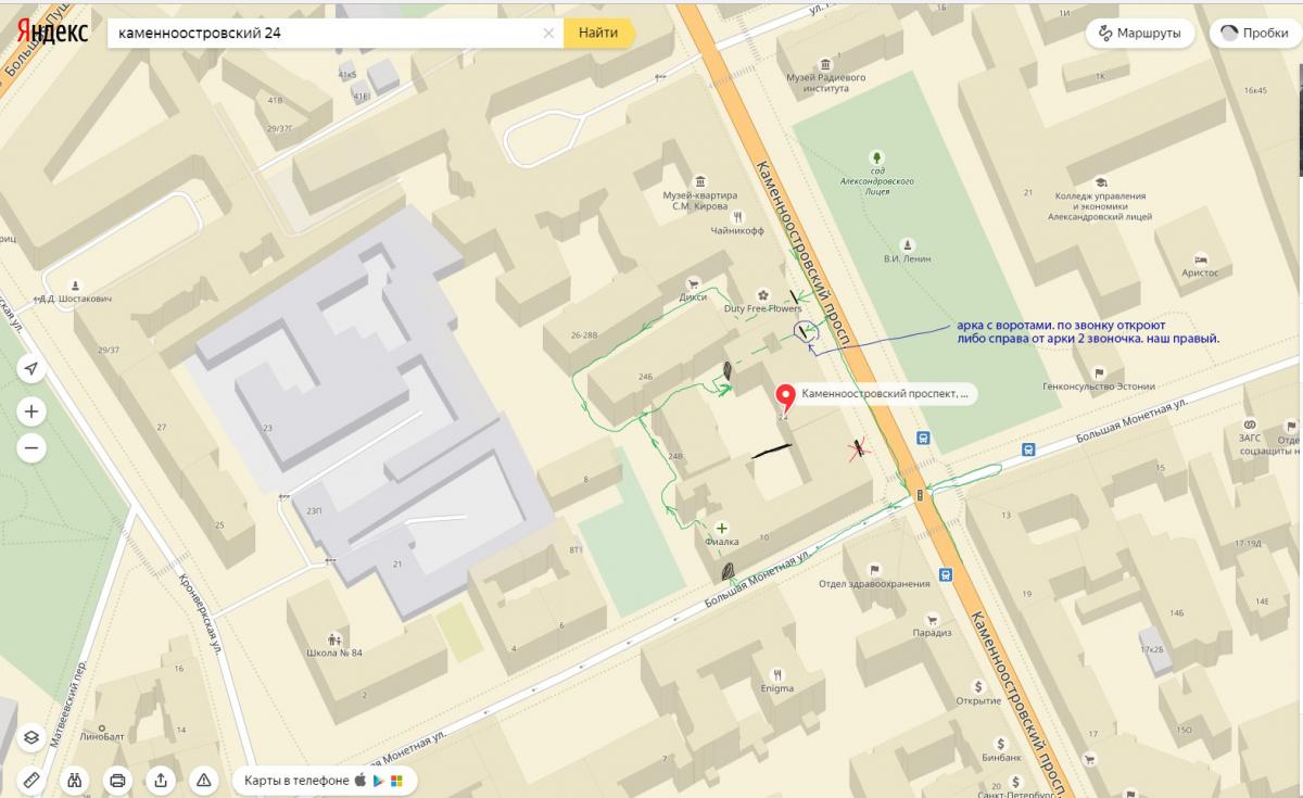 Чтобы воспользоваться парковкой во дворе, нужно повернуть СРАЗУ после 26-го дома (въезд между 26-м и 24-м домом, перед "Оптикой"). Я промахнулся (в середине 24-го дома тоже есть арка, но в нее въезжают какие-то фирмачи), пришлось нагло возвращаться по тратуару, но это не на каждой машине возможно - т.к еще более хитрож@лтые там вовсю паркуются. Выезжал потом на Большую Монетную, там арка без ворот, т.е если всё же промахнешься, то оттуда (в первую арку от угла) можно въехать. Но не стоит думать, что во дворах этих парковаться вольготно, - пришлось нарезать пару кругов, прежде чем удалось воткнуть машину.