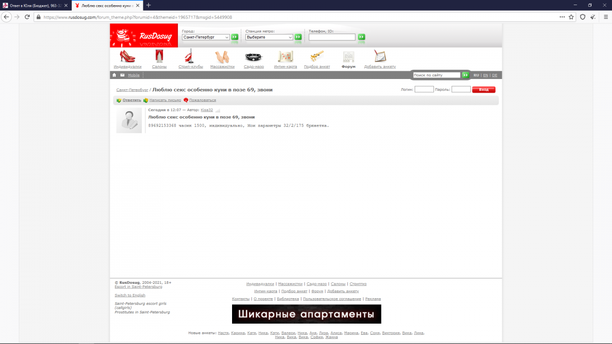 Юля (Бюджет), 963-325-94-22. Ранее 905-233-99-71, 964-380-48-39, 969-215-33-68