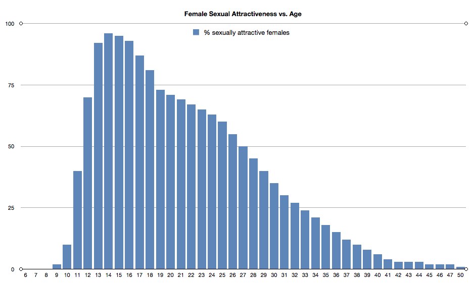 Во время съёмок документального фильма "Are All Men Pedophiles?" был проведён инернет-опрос, в котором мужчинам демонстрировались фотографии женщин разного возраста, при этом сам возраст не указывался. Участники должны были сказать, считают ли они данную женщину сексуально привлекательной. Результаты опроса получились такие: