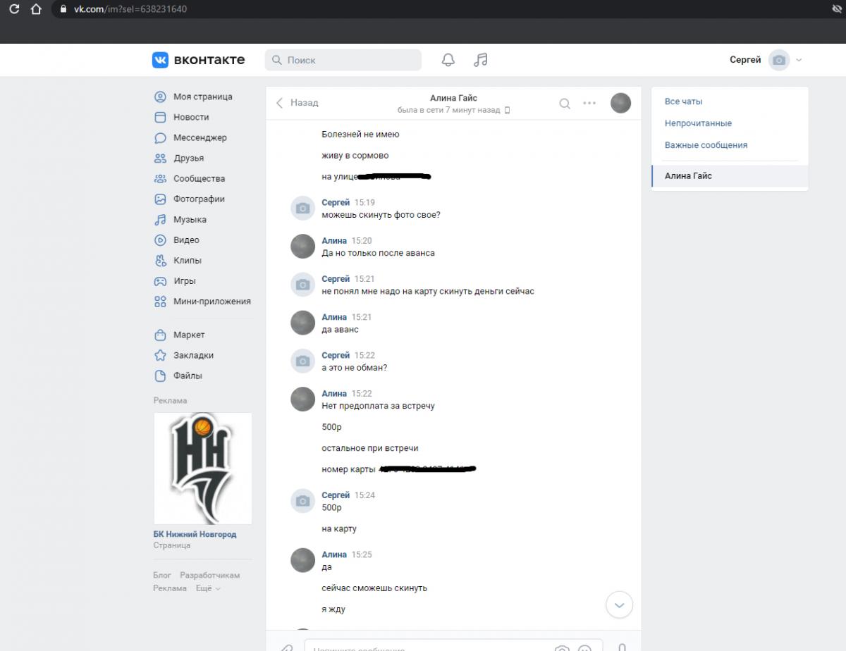 Подтверждаю. Парень, гоповатого вида, зовут Иван, живёт в Дзержинске, по улице Окская набережная 19, девушка на фото его жена, зовут Ангелина, работает в "ноготочках". Сперва думал, что от недалёкого ума решил сдавать свою мадам для заработка, но скрины переписок ходоков подтверждают развод на предоплату. Правда, зачем тогда "реальные" фото выкладывать