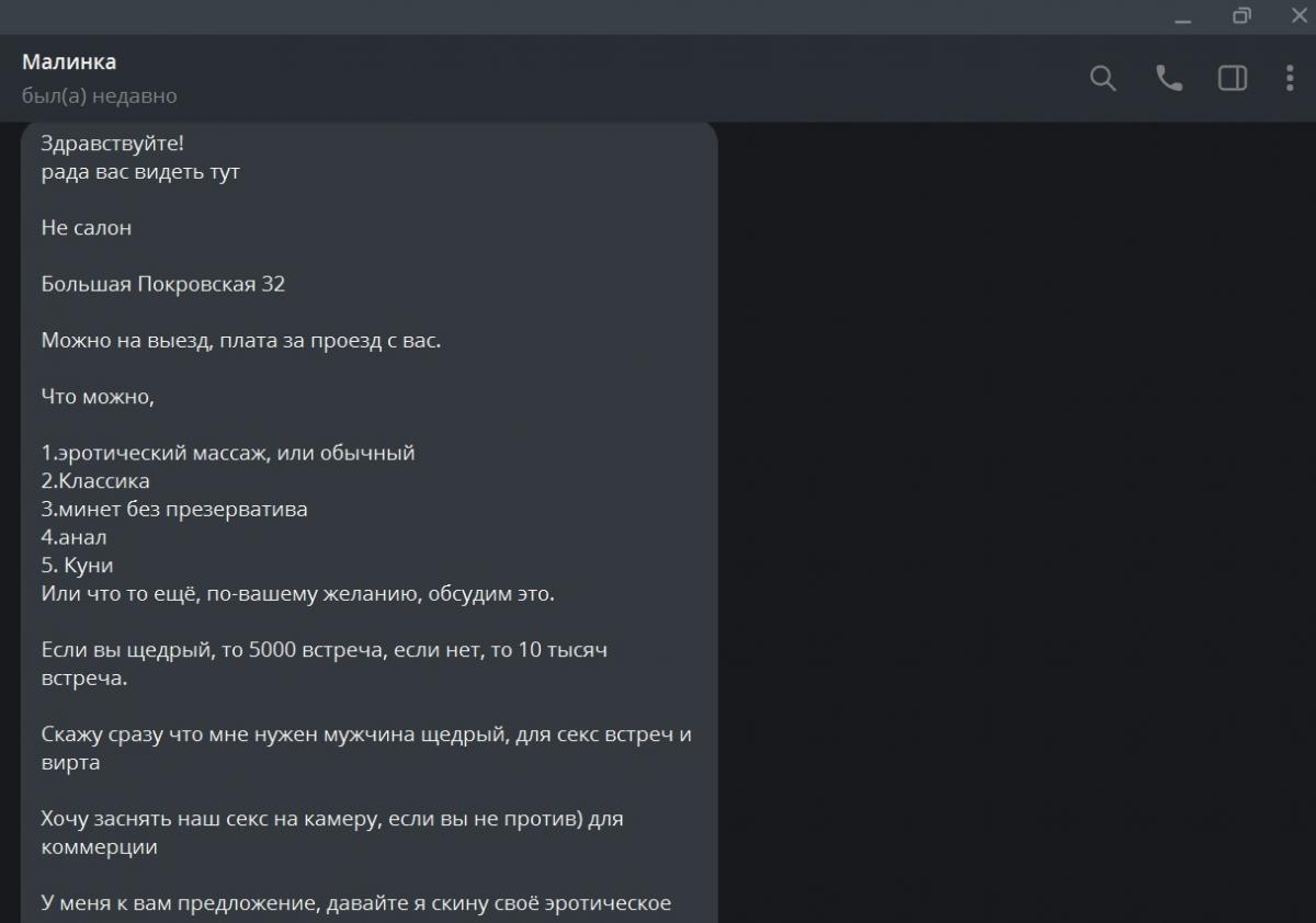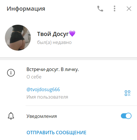Там же указан её ТГ-контакт: @tvojdosug666