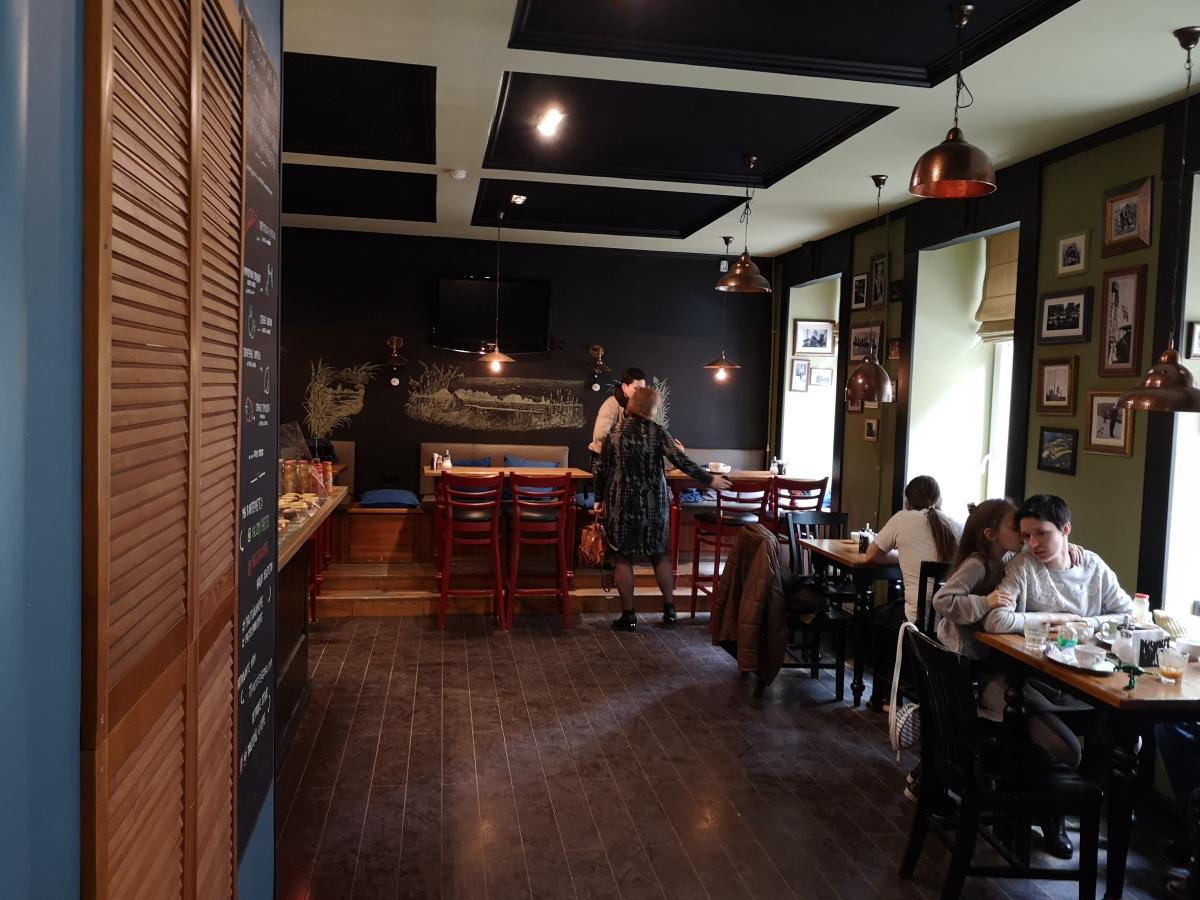 Данному заведению больше подошло бы название "Склад". Интерьер дизайнерский - кресла и диваны из поддонов, столики из бочек, в углу торчит стрела погрузчика... Впрочем, есть еще второй зал, куда я не дошел.