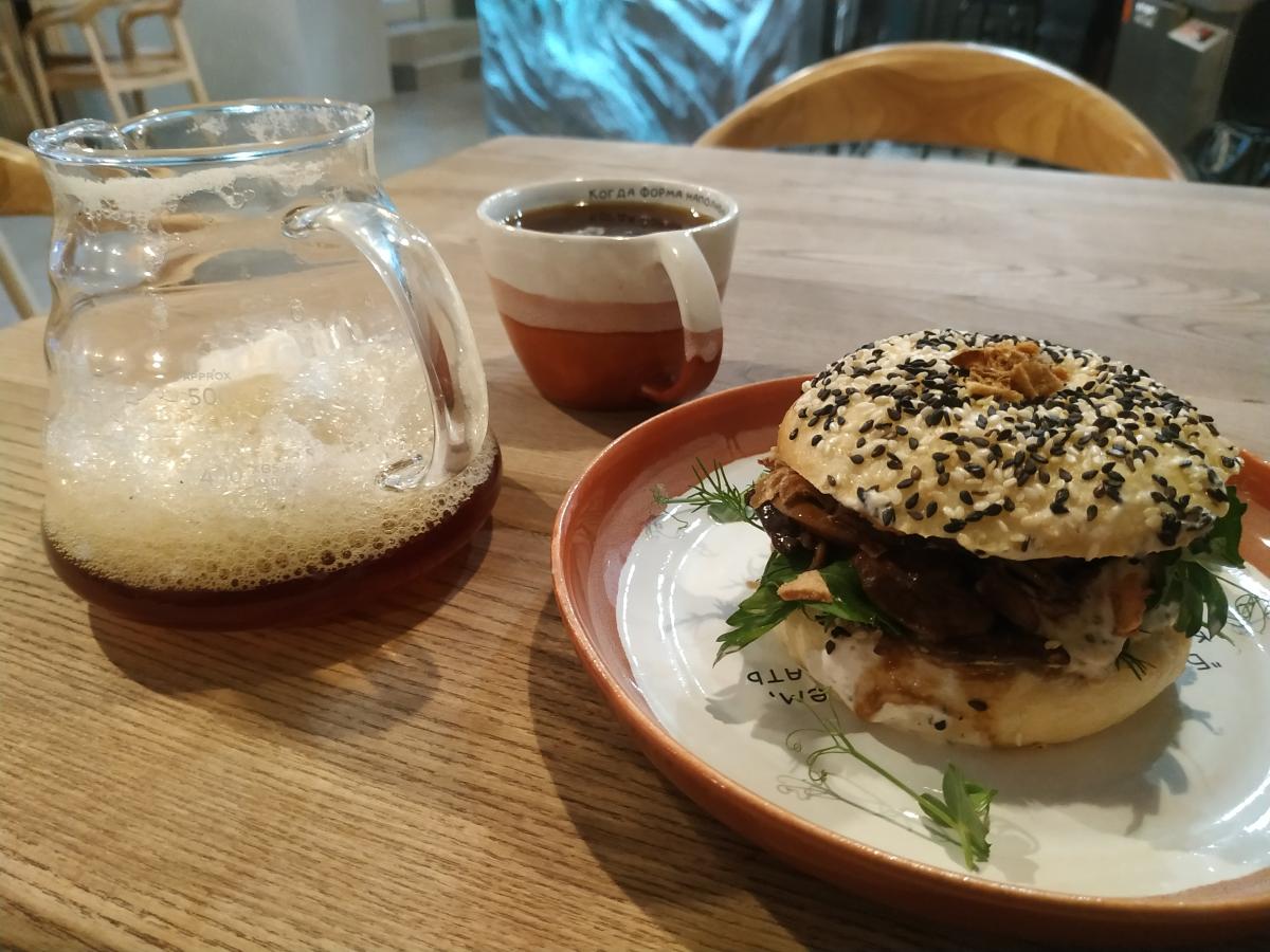 Кофейня на Петроге, на Пионерской ул 3, в 500 метрах от метро Спортивная. Пн-пт 08:30-21:00, сб-вс 09:30-21:00. Недавно заходил на кофе с завтраком.