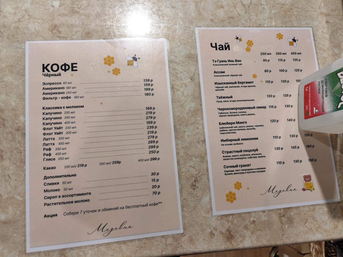 Меню - двусторонняя картонка, где всего хватает (кроме кофейного разнообразия) завтраки -глазунья, бриошь с форелью или пастрами, оладьи, боулы, гриль чиз, сырники, запеканка, всякие пасты, салаты, супы. Десертов в меню только два - пирог яблочный и черничный. В общем место больше для пожевать. Точно не для кофеманов.