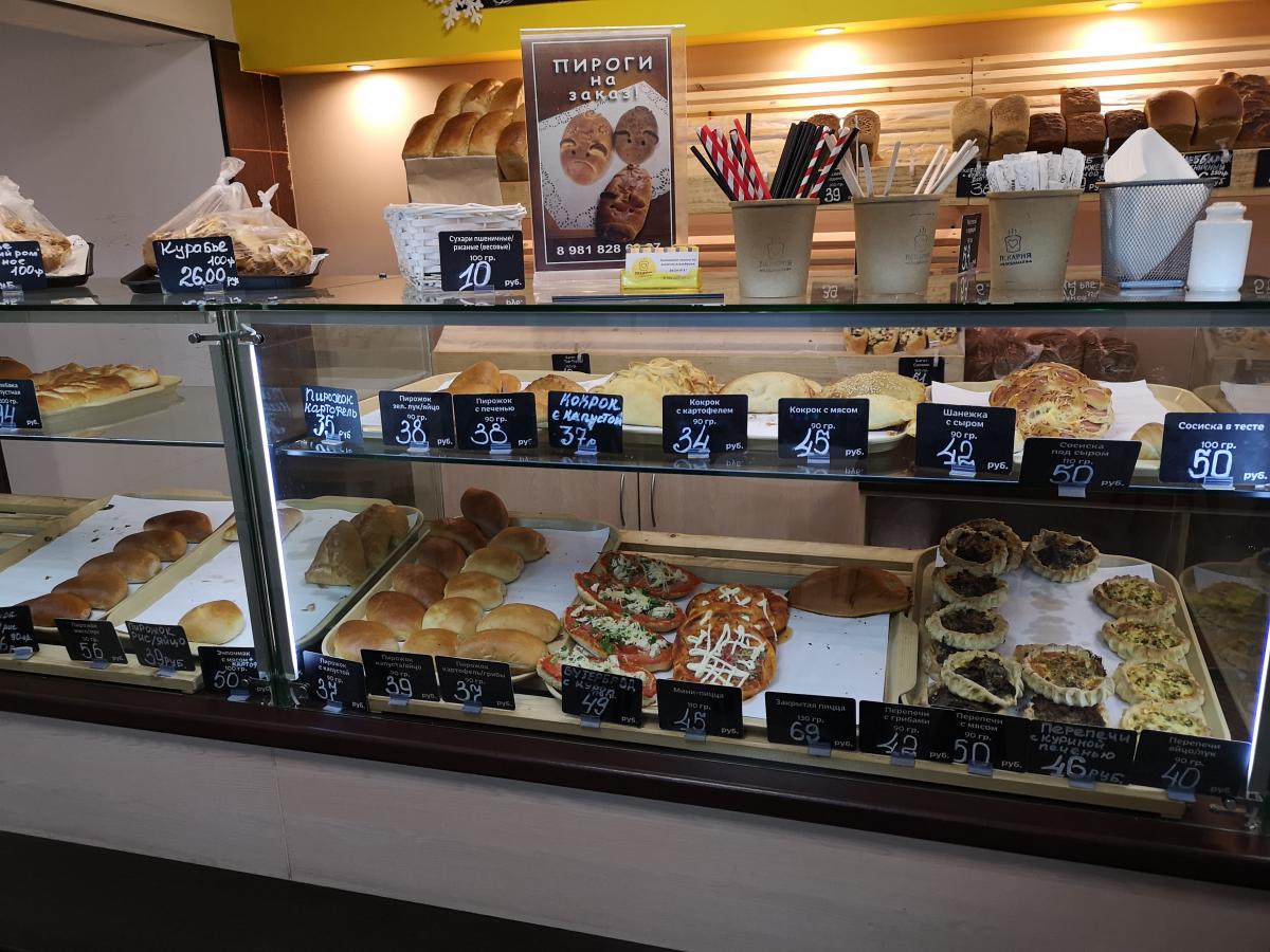 Выпечка, по словам продавщицы, вся своего изготовления. Присутствуют как сытные, так и сладкие пирожки и прочие выпечные изделия. Правда, тортов и пирожных нет.