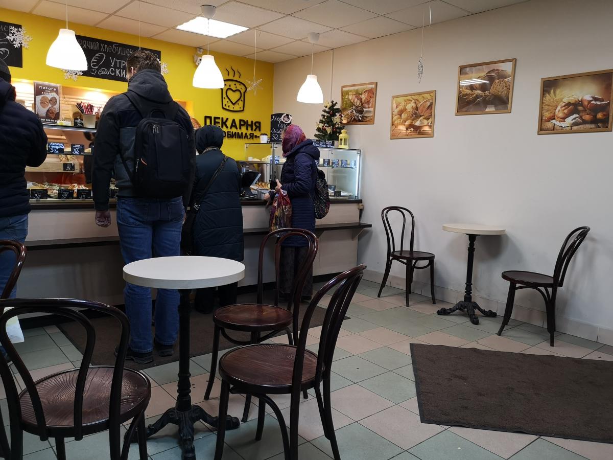 Нельзя сказать, что все заточено на хлеб навынос. Стоят 5 столиков, правда маленьких, при этом тесноты нет. Музыки тоже нет, что для меня скорее плюс