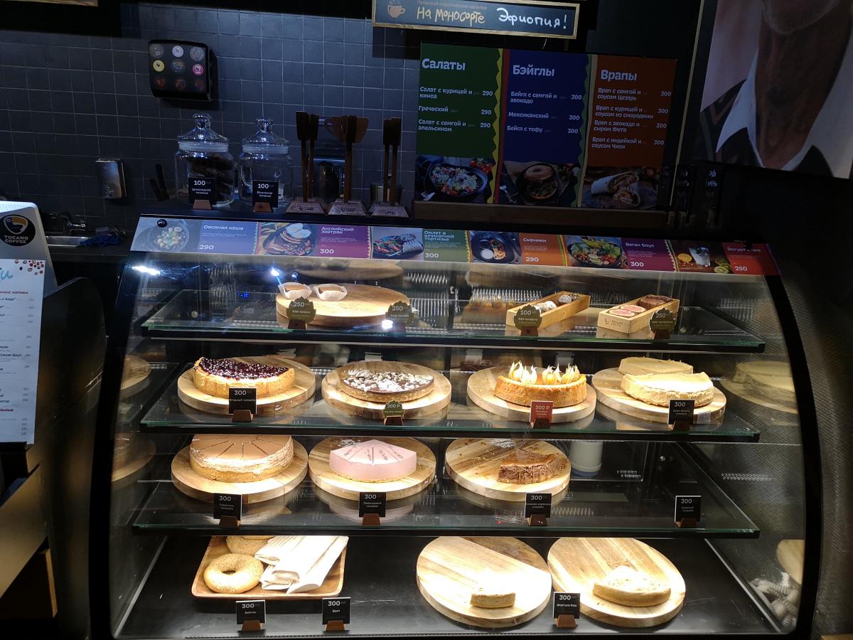 Хвалили также бейглы. Лично я брал тыквенный чизкейк, и он был подозрительно сухой и рассыпчатый, хоть и вкусный. Видимо, свежевыпеченным он был давно в прошлом