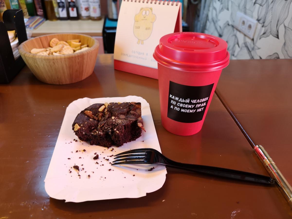 Поэтому на ум приходит следующее: налить полный термос "альтернативы" (кахве или пуровер) и пойти с ним в Север-Метрополь или тот же Кофирс закусывать десертами.
