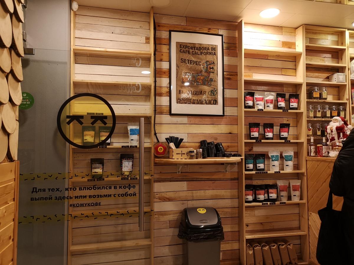 Подход к кофе правильный - над стойкой написана дата обжарки (21.01.2020) и "сегодня на моносорте - Эфиопия".