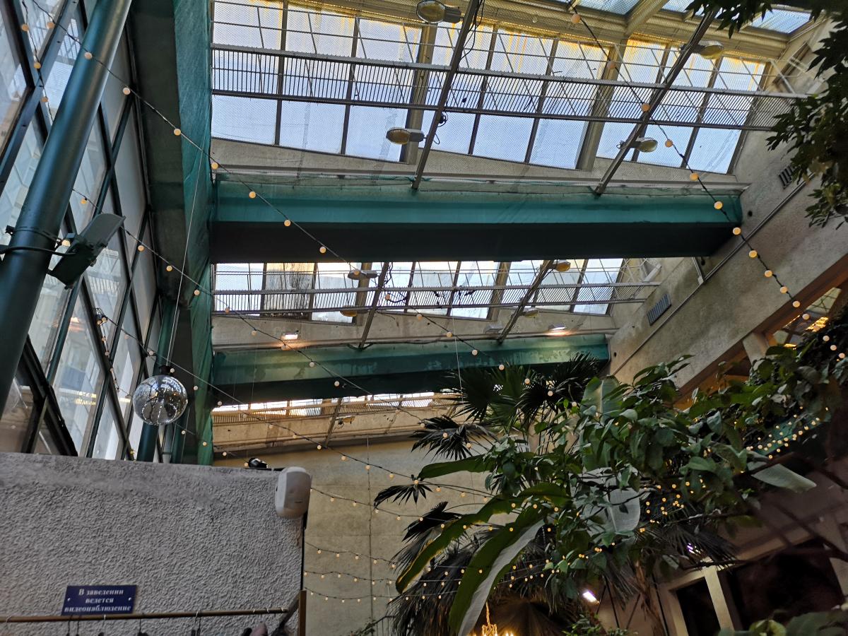 Помещение довольно большое и зеленое (нетрудно догадаться).