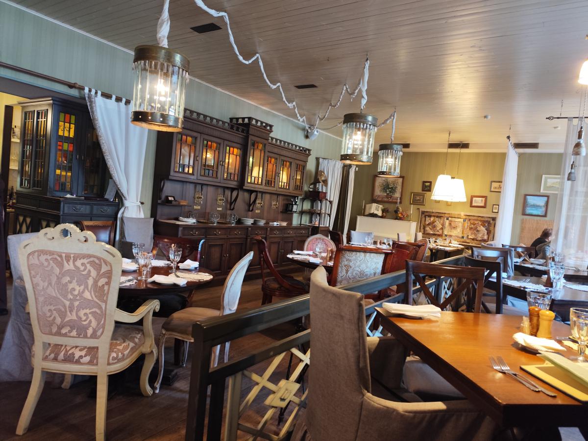 При этом так хотелось хорошо пожрать, что не стал читать отзывов и смотреть другую информацию. При входе показалось, что я попал в фильму ''Неоконченная пьеса для механического пианино''. Ну, вот такое ощущение возникло. Как на дачу начала 20 века попал. Стало интересно. Оказалось, что я в ресторане один. Меню в виде старой, такой, книги.