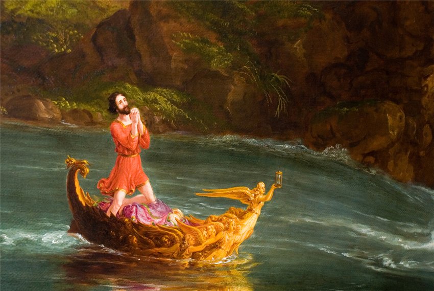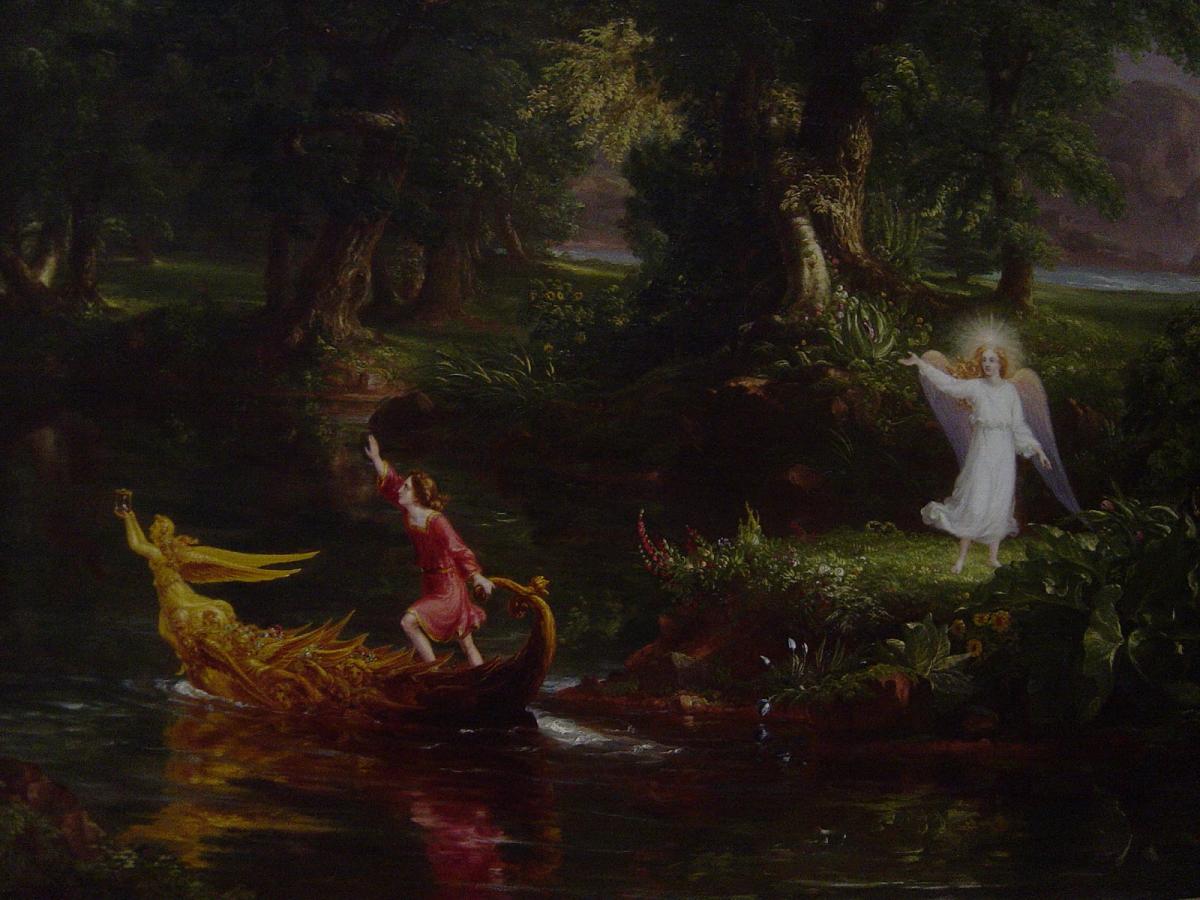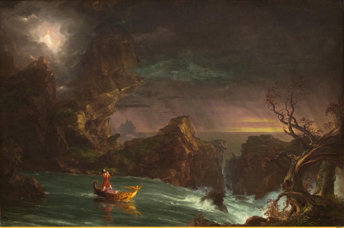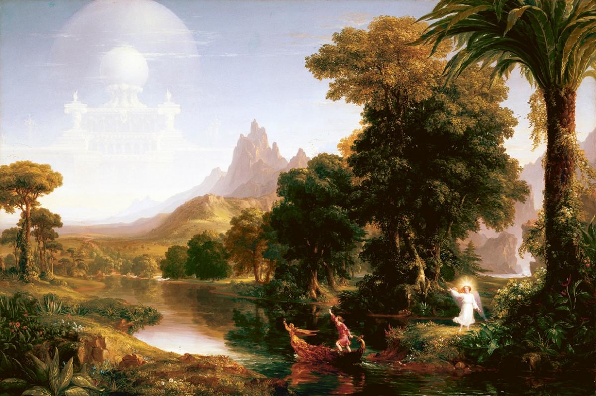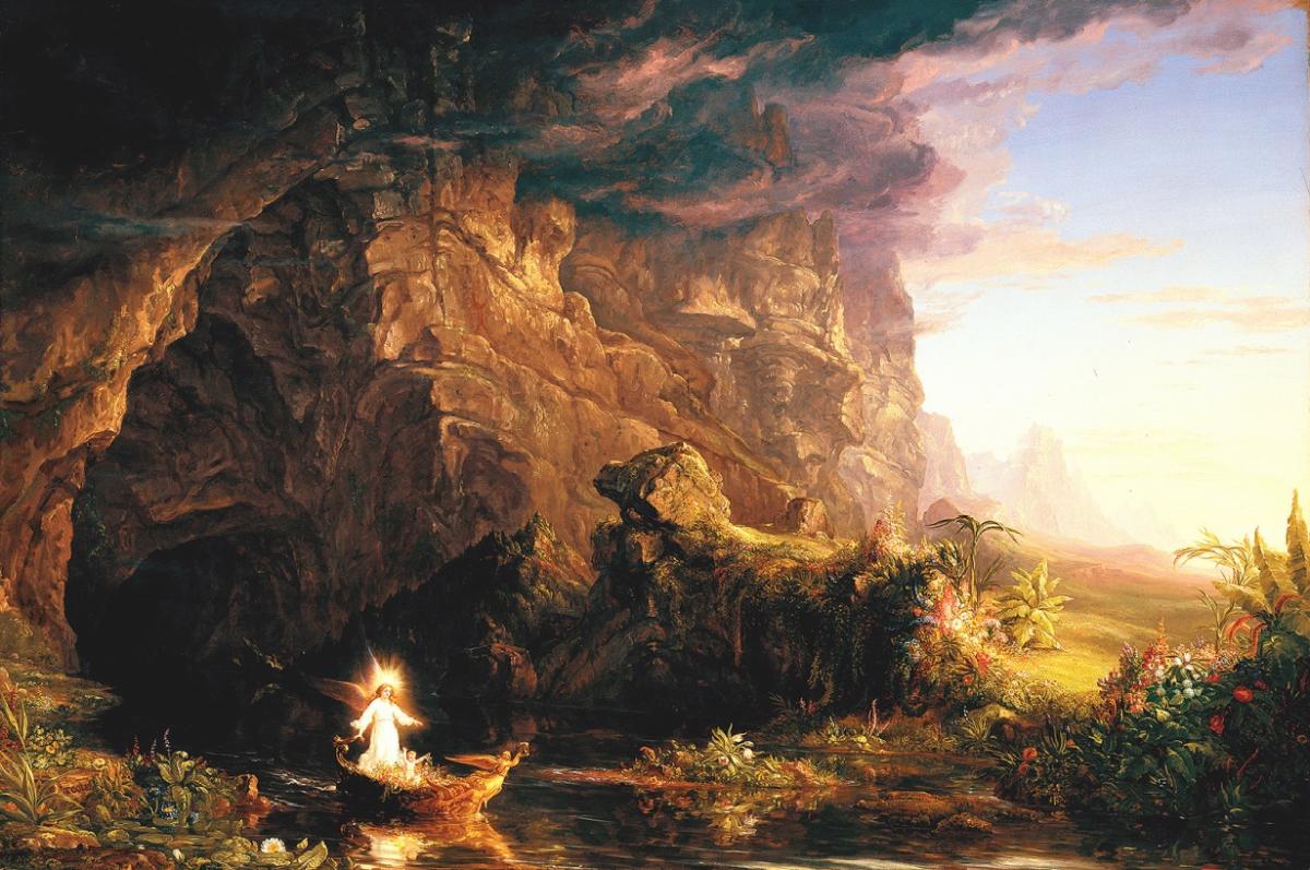 Недавно открыл для себя творчество американского художника 19 века Томаса Коула. У него есть и классические пейзажи, но более типичным было изображение несуществующих объектов и сюжетов. Для примера решил выложить здесь цикл "Путешествие жизни".
