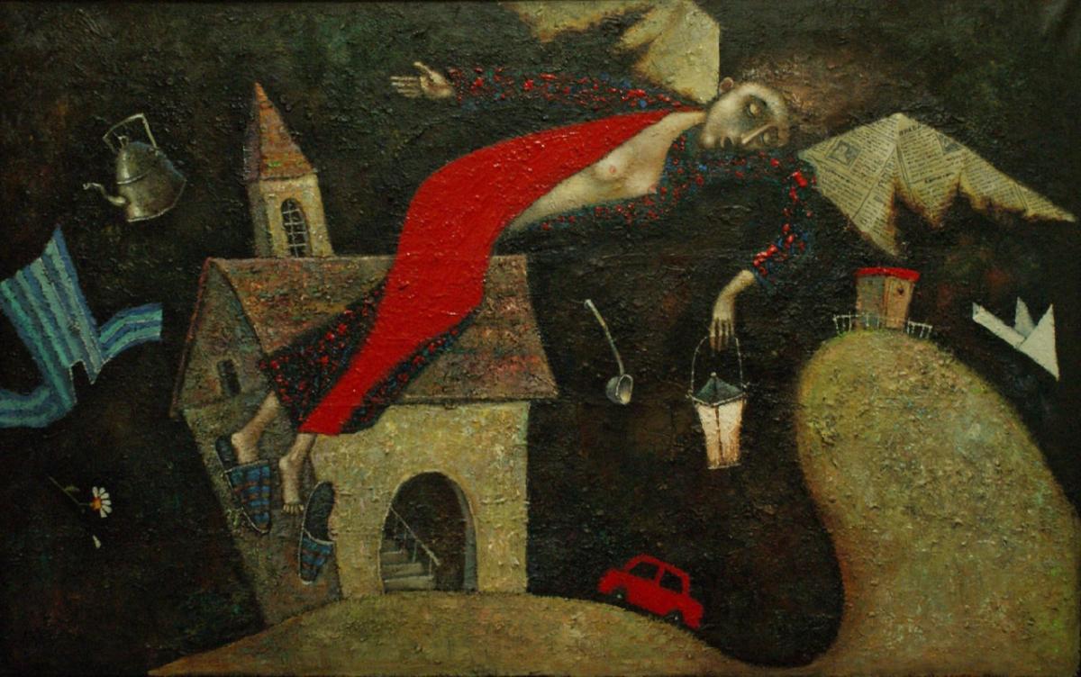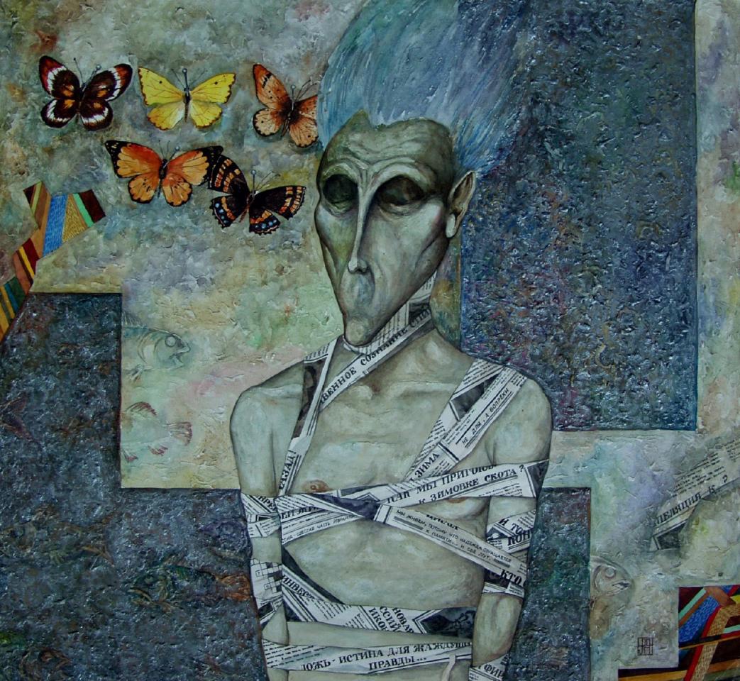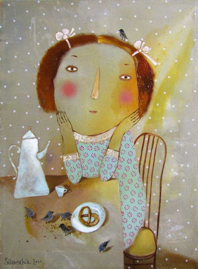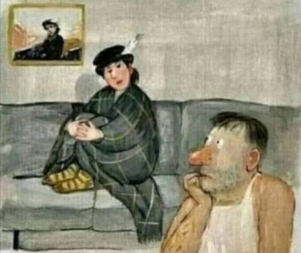 Контраст между мускулистыми фигурами советских трудящихся девушек и томной парижанкой в кафе. Кстати, порядочные женщины в то время (1935 год) в одиночку по кафешкам не ходили, так что очевидно - ждет клиента