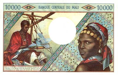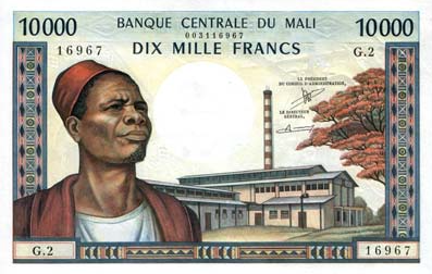 В Мали только четыре номинала , 10.000 , 5.000 , 2000...,и 500 франков