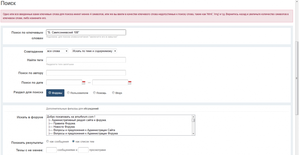 Починили "искать на форуме" на сайте