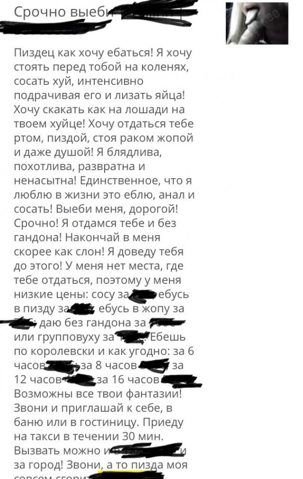 Па номеру "920-253-92-98" [ +79202539298 ] из онкеты "https://vk.com/id579365836" (а рафно из абифления "https://vk.com/wall-172120171_7775" Прикрепленное изображение: Объявление пиздец как хочу ебаться.jpg ) каг-то дазванивалсо Прикрепленное изображение: 269.gif - назвали ценнег 2.0к и улицу Чкалова (ф тот мамент паехать не смок :(), вопсчем, паттвердить / аправергнуть ничо нимагу Прикрепленное изображение: icon_neutral.gif .