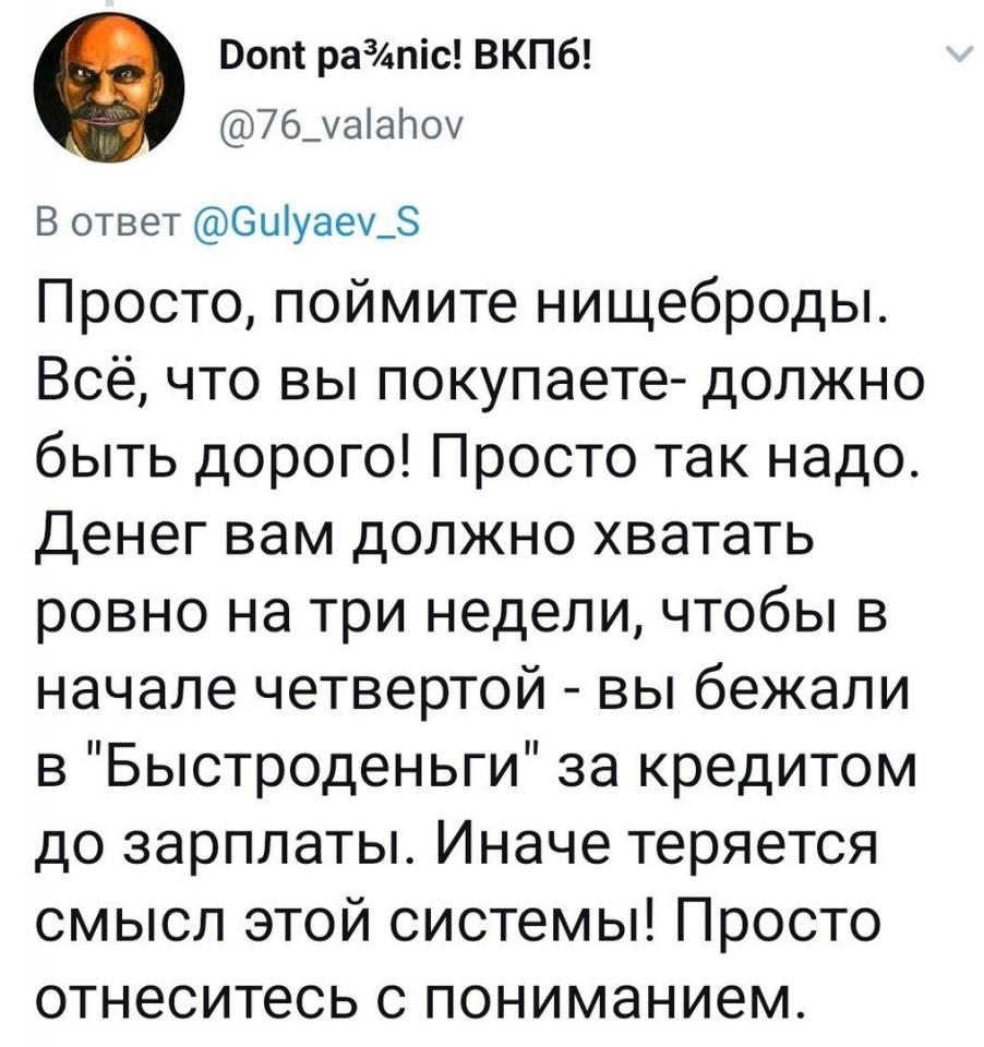 Vaasmc, йа ахуенно рад таму, што ты нашол себе УБВ [ УБЖ ] Прикрепленное изображение: Rage Smile - Angel Girl.png паффкусу - савет вам, да любоффьПрикрепленное изображение: Butthurt Smile - Добрая улыбка.jpg , и фсио токое, также йа блягодарен (а то патом скажешь, што ты для нас старалсо, а мы блеать неблягодарные Прикрепленное изображение: Rage Smile - Troll face (Sigmund Freud).gif ) за папытко паделиццо канктактами (русскава нада блягодарить уже за намерение Прикрепленное изображение: Rage Smile - Troll face.gif ) - если паможет хоть каму-то, ето уже было не зря Прикрепленное изображение: Allahu Akbar.png . Касательно "Кантрольнай закупки" ети тваи "таблицы Брадиса" Прикрепленное изображение: Rage Smile - Cereal Guy (Reading the newspaper).gif - "ни пришей пизде рукафф", а не аччот Прикрепленное изображение: Rage Smile - Challenge accepted.gif (разумееццо, ничо никуда не дабафляю Прикрепленное изображение: Нихуя не так.gif ). Йа сам за табличьную чясть Прикрепленное изображение: Кивание головой.gif , но ана далжна быть снабжена риккамендацией и апесанием, иначе иё фактическая ценность не сильно привышает скриншот онкеты Прикрепленное изображение: Палец вниз (Вариант 1).gif (именно паетаму твайо творчество так падазрительно напаменает риккламу, хатя йа и гатофф паверить, што ты не приследовал риккламных целей).