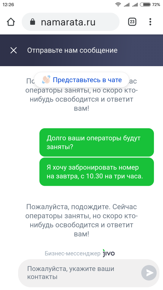 А мне так и не удалось посетить этот отель, т.к. в чате никто не отвечает. И требование предоставить свой телефон выглядит несколько неожиданным.
