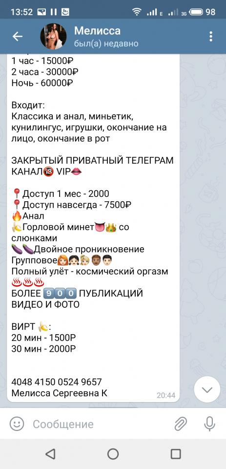 По цене: 20 000 р = 1 час; 40 000 р = 2 часа; ночная встреча = 120 000 р