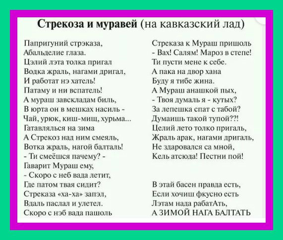 Абезательно атпешусь Прикрепленное изображение: Россия, дай пять!.jpg ... фсе чернавики набрасал, ф ближайшые дни буду релизить Прикрепленное изображение: Rage Smile - Dihad Cooking.png - йа панимаю, што ачиридной рас "заффтраками кармлю" Прикрепленное изображение: Выпусти своего внутреннего зверя (ЗавтраЗавр).png , но и разарваццо на чясти между разными делами тож нипалучяеццо Прикрепленное изображение: Стрекоза и Муравей (на кавказский лад).jpg .