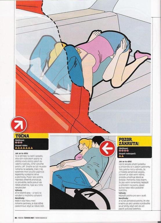 Так вот,( заднее сиденье, ) сидя на мужчине сверху, откинуться назад, опираясь на спинку (подголовник, спинку кресла по диагонали) можно получить достаточное пространство для фрикций. Хотя, конечно, отечественные машины оставляют меньше выбора поз, потому что не отодвигается и не откидивается оборудование в том объеме, в котором хотелось бы.