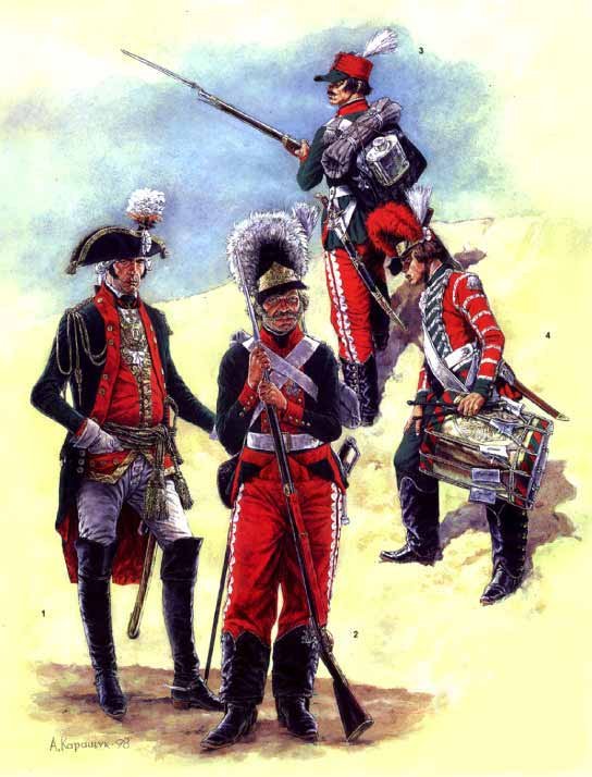 В принципе, гренадеров можно рассматривать, как штурмовые части, спецназ своего времени. К наполеоновским войнам это превратилось в формальность - гренады уже не метались. Отличия между фузилерами и гренадерами нивелировались и свелись к росту, обмундированию (у нас павловские гренадеры на кивера не перешли, сохранив свои остроконечные шапки с переходящими иссеченными налобниками). Даже темп шага к 1812му унифицировали.