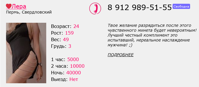 Анкета: https://sexxxprm.com...titutka/912114/ (и ещё)