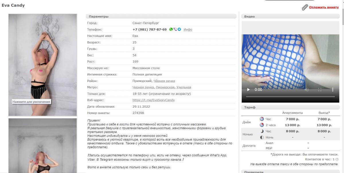 Ок, смотрю анкету на суках, видео в телеге, вроде бы все как обычно, принимает на Ланском 14, вот анкета:
