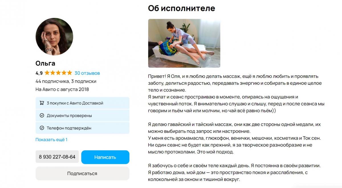 В начале переписки Мария начала выкаблучиваться относительно "не знаю, когда смогу принять, так как много дел, а массаж - не основное занятие", но изучив мой профиль, быстро переобулась на "готова встретиться, когда вам удобно". Мой ответ "удобно завтра в конце дня, чтобы никто не стоял за мной в очереди" определил время 19.00. У Марии все сеансы двухчасовые, по 10К за сеанс, поэтому продолжительность встречи отдельно оговаривать не пришлось.