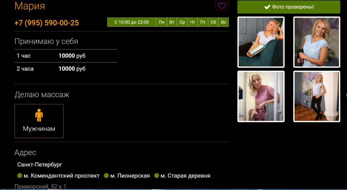 Первой посещенной была Мария, принимающая на Приморском 52/1, визит к которой я опишу ниже. Сразу отмечу, что все остальные визиты прошли почти в точном соответствии с первым, разница была лишь в обстановке, темах болтовни, ну и конечно, в самих женщинах (ибо каждая баба ебётся по-своему). Но суть встреч "по заряженным тегам" оказалась одинаковой - до массажа дело не дошло ни разу. Зато схема "Знакомство - Трёп - Секс без защиты" строго соблюдалась в каждом из восьми случаев. Причем с минимальной стартовой активностью с моей стороны, что собственно и побудило меня поделиться результатами проведенной "работы".
