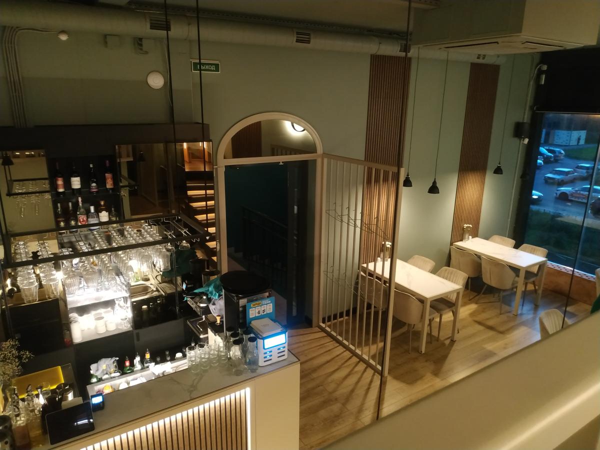 Небольшой уютный двухуровневый ресторанчик. На первом уровне - 6 столиков и бар, второй - 3 столика. Интерьер приятный, креселы удобные, официанты услужливые, с/у чистые с кремами для рук и тряпошными полотенцами.