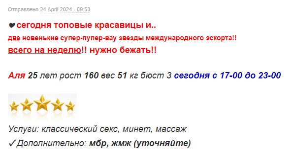 Более опытные ходоки может быть внесут ясность. В рекламной ветке ссылки на отчёты нет, фотографии совершенно другие и нигде больше не засветились. С Клео не знаком, поэтому исходил из того, что Аля новенькая и работает с апреля.