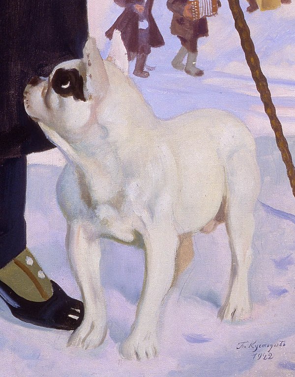 Любопытный факт: для картины пса (французского бульдога) заставляли позировать специально, ему показывали кошку, и он настораживался, становился в стойку и внимательно смотрел в нужную сторону. Своих бульдогов (их было много) Шаляпин вообще обожал и таскал с собой на гастроли всю свору.
