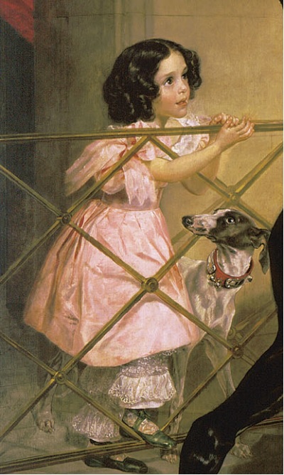Любопытный факт: изящные левретки -- такая старинная порода собак, что их изображения находят и в Древнем Египте, и Помпеях. И, конечно, это тоже атрибут роскоши.