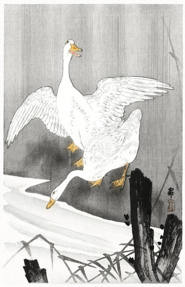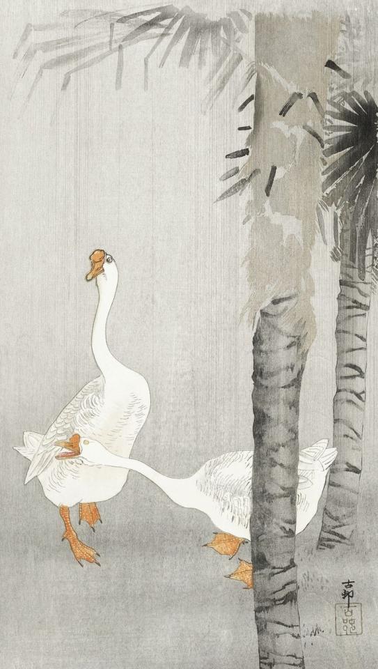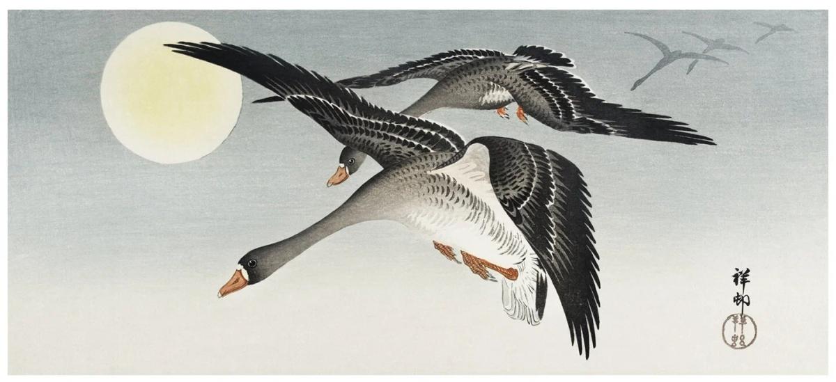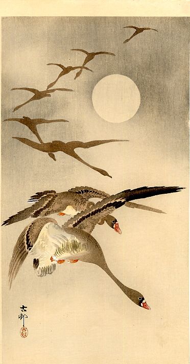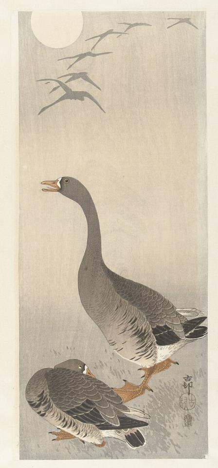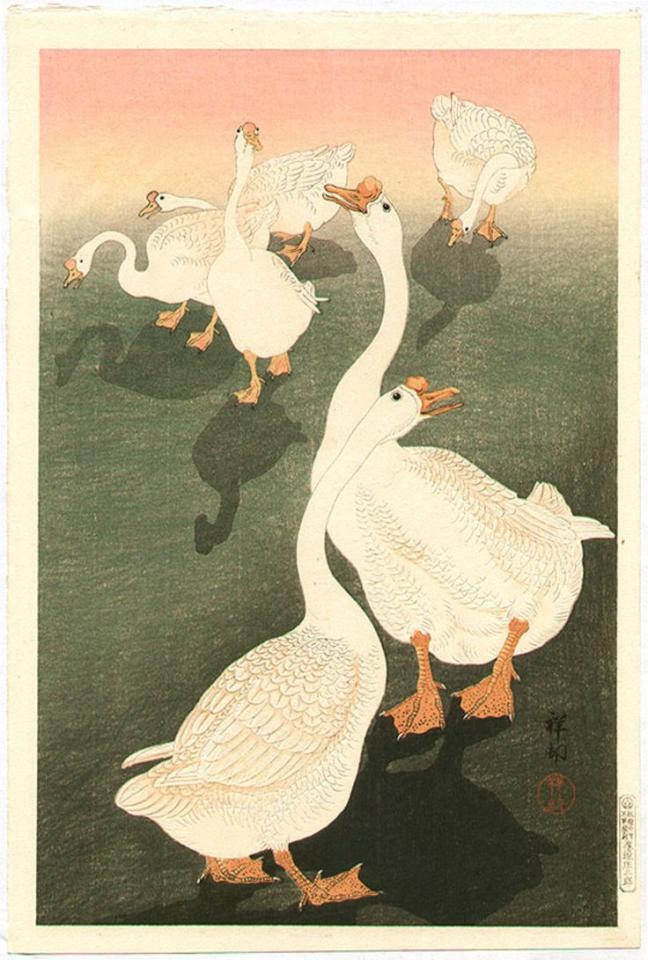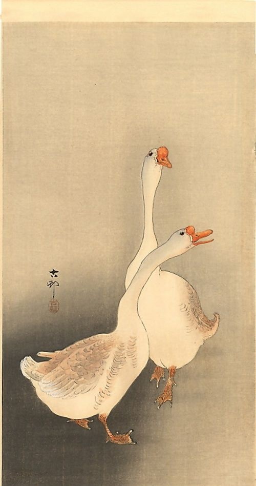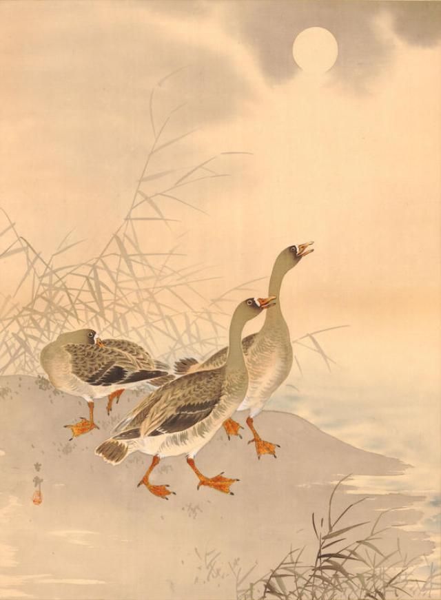 Само собой в разговоре о "гусиной" живописи мы не можем обойти стороной страны Азии. Вот уж где гусям полное раздолье. Как писал поэт Исса Кобаяси живший в период Эдо: