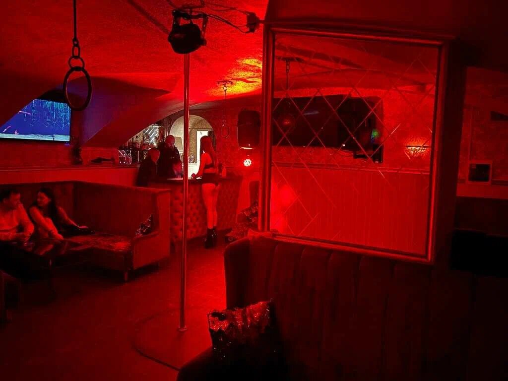 Помещение совсем маленькое: барная стойка (у которой один человек помещается, ну может два), один пилон, несколько удобных диванчиков.