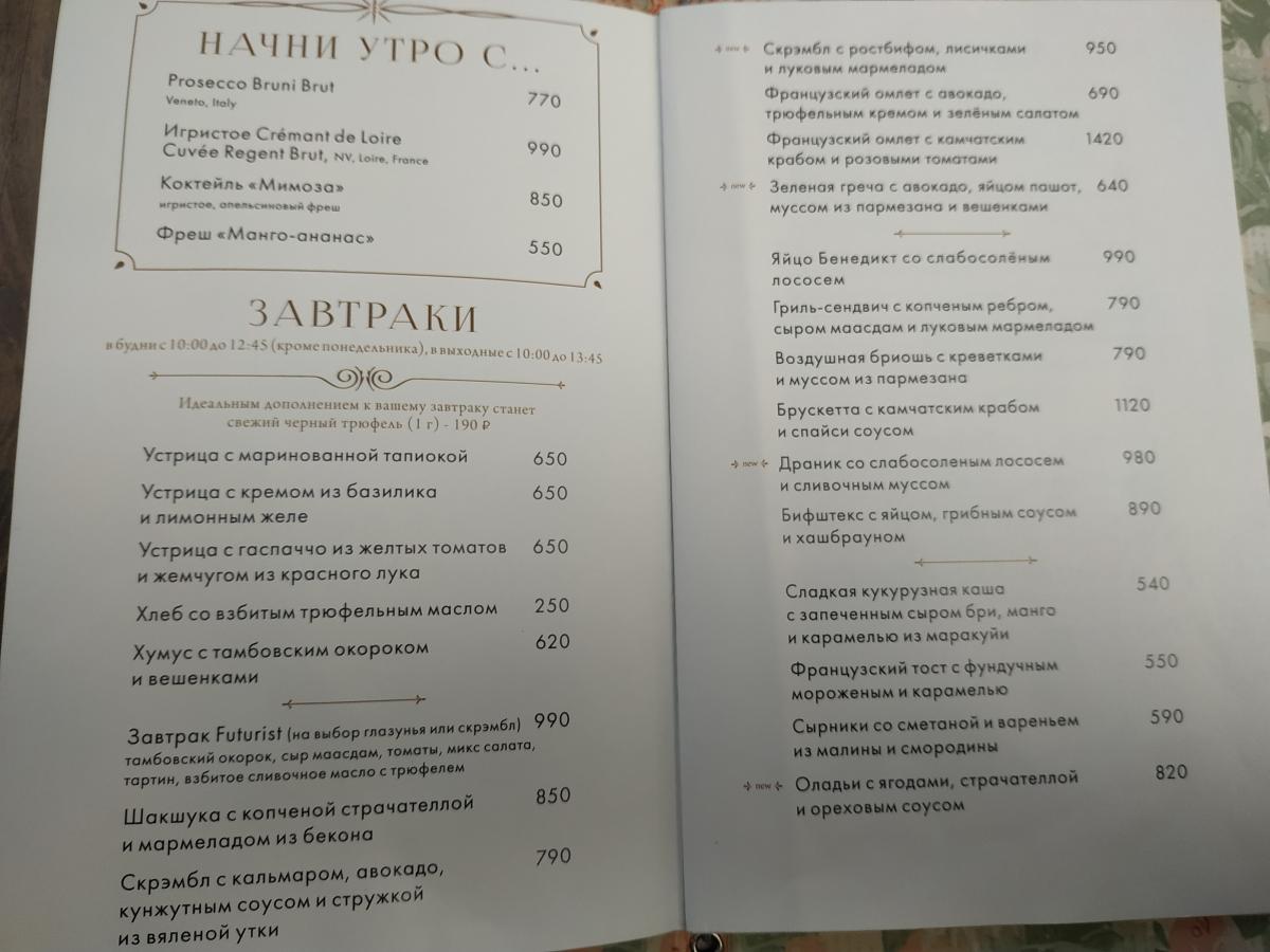 ~700 метров от м.Чкаловская по Б.Зеленина. Работает с 10:00 до 23:00. Находится на первом этаже одноименного элитного ЖК. Как хостес при входе, так и официанты, - в безразмерной форме, смахивающей на розовые пижамы. Футуристично. В воскресенье вечером, в среду утром, - свободные места были всегда. Зал один, с баром, довольно камерно. Рядом с барной стойкой сидеть в выхи некомфортно, музыка громковата, плюс ещё бармен колдует своим шейкером. Интерьер приятный, футуризъм в пастельных тонах. Есть терраса. Меню страничное лаконичное. Только тарелки и приборы с узорами а-ля 18 век смотрятся как-то не очень футуристично. Ну ладно, пусть будет эклектика.