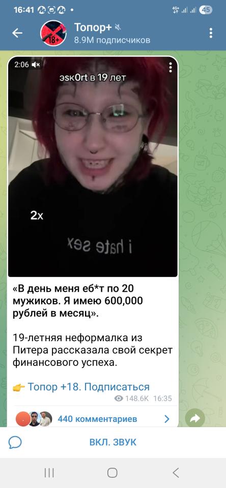 Тут видосик на пару минут как деваха попала в эскорт, и залутала за месяц работы 600к. Легенда входа самая распространенная:переезд в крупный город, куча долгов, подсела на наркоту. Вот вам образ современной мефедроновой альтушкиИзображение
