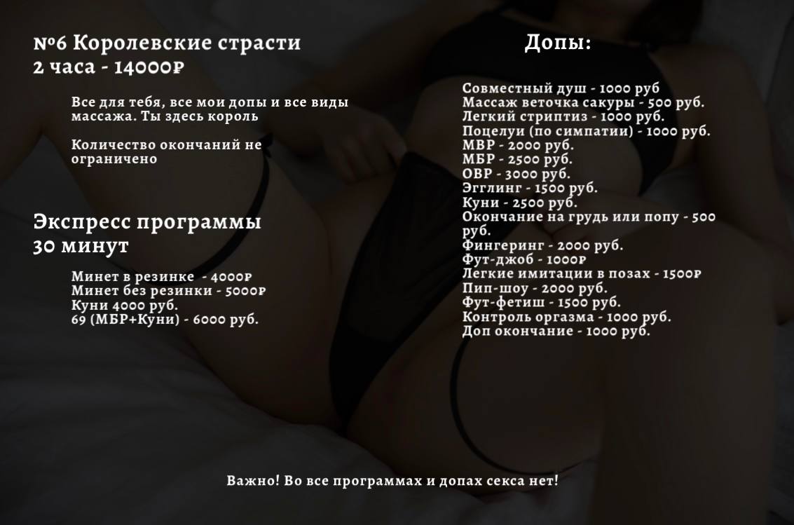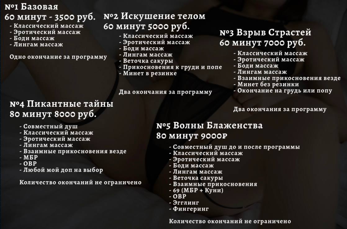 Договорились с девой через телегу. Всё четко. Прихожу - встречает милая красивая юная девушка в нижнем белье. Взгляд и улыбка располагают. Отдал 9к за программу, где есть почти всё. Жаль поцелуев нет. Получилось МБР - классический массаж+эротический + второй МБР. Фингеринг разрешается.