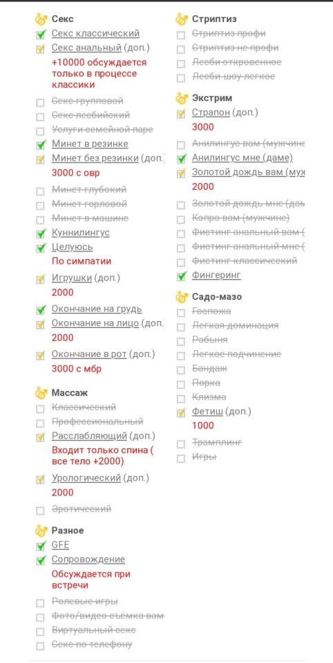 Навестил ее по осени, очень зацепили фотки, видел, что указан вес 90кг но он же может и равномерно распределяться. Списался и в тот же день встретились. Когда дело дошло до дела, то выяснилось что есть оочень большой живот, плоская жопа и маленькие бедра, что не имело ничего общего с фотками. Грудь тоже очень сильно висела. Даже миссионерская поза не получилась толком из за живота. Озвучка практически отсутствует. Минет грубый с зубами. На второй заход желания идти не возникло. Ну хоть вкусных конфет поел