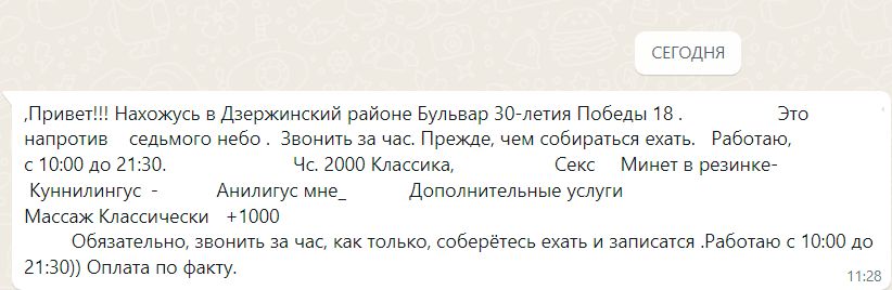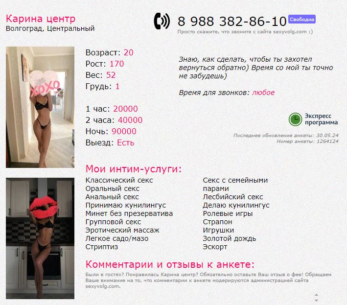 инди все отдыхали, а ездить на разведку к новым чето не было ни времени, не желания. Смотрю, на сайте засветилась всем небезизвестная Ксюха, она же Оксана 2часа 7500, она же КсюшаРаботаю. Вставлять ссылку не имеет смысла, все её и так кому надо знают, да и тем более она сейчас в архиве. Звоню, трубку взяла, алё-малё...договорились на определённое время, всё в том же небезизвестном Мартоне. Так как я у этой мадам уже бывал не раз, правда последний визит по-моему был в конце прошлого лета, ничего не предвещало беды, но оказалось я слегка ошибся)))) Подъезжаю к назначенному времени звоню, она говорит заходи я жду тебя в фойе. Захожу, Ксюша сидит на диване мило улыбается)) Вроде всё таже Ксюша, симпатичное личико, нарядное платице до колен, туфельки на каблучках, вообщем Ксюша как Ксюша. Садись говорит рядышком, мне кое что сказать тебе нужно, есть не большой ньюанс, я забыла тебе по телефону сказать, но у меня это вроде в анкете указано, я думала что ты в курсе, я немножечко в положении))) тебя это не смутит?! Зашебись информация, а главное вовремя!!!А немножечко это как?! До этого она сидела в позе что живота не было видно, да я и внимание на это сразу не обратил. А тут она отогнулась на спинку дивана и убрала руки, и тут я охерел. Вот это блядь немножечко, охуеть небольшой ньюанс))) Да ты насносях мать!!! И какой месяц? Восьмой..... Неее, я всё понимаю, есть люди которым нравится такое положение, есть кадры которые даже специально ищут таких проституток, и даже едут в другие города а иногда и страны за такой экзотикой, но я точно не из их числа))) Вообщем чу-чуть посидели, поржали над этой ситуацией, она извинялась что забыла предупредить, мол она забыла что беременна)))) Сказала что скоро, месяца через 3-4 вернется уже в былой форме, и пообещала волшебное обслуживанием за свою "забывчивость"))) и я, был таков. Но без женской ласки мне чёто в этот день не хотелось оставаться. Обзвонил ещё пару шалманов, но у меня чето не стал с ними клеится разговор. Решил пройтись по массажисткам, и мой взор сразу же упал вот на эту мадам:
